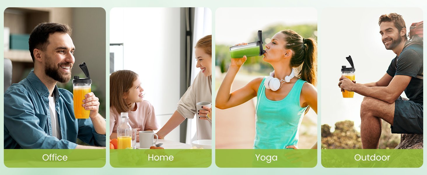 Portabilidad total, se lleva a la oficina, gimnasio o viajes, los vasos cierran bien y no hay fugas.